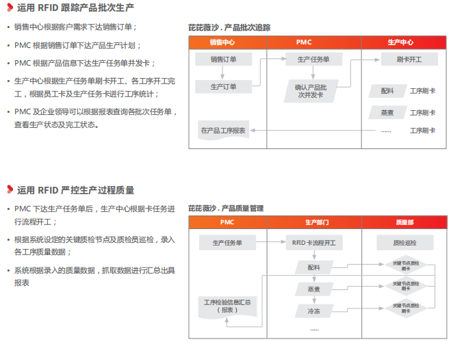 RFID 车间管理是应用 RFID 卡结合刷读设备很好地解决了传统设备的人机交互问题,不但提 升了管理效率,也使成本核算更加精细化,车间现场变得透明,业务执行反馈也更及时高效,为 企业数字化车间打好了坚实基础。