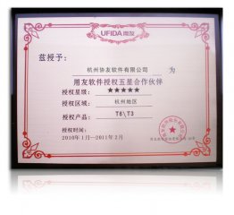 2010年用友软件授权五星合作伙伴T6T3