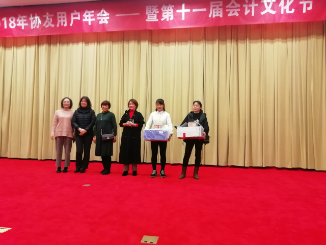 会议最后一轮抽奖环节为在场人员抽取三等奖、二等奖、一等奖共有五名幸运会计朋友获得。