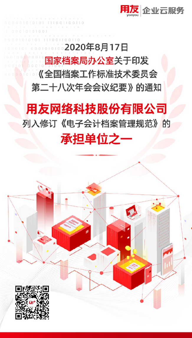 其实,早在2015年年底,国家就颁布了关于电子会计档案管理的79号令,从政策上肯定了电子会计档案的合法性。今年8月17日,国家档案局印发通知,用友被列入电子会计档案管理规范的修订成员单位之一。我们非常荣幸,能够在财税电子化、数据化的时代,为这一进程做出努力和贡献。