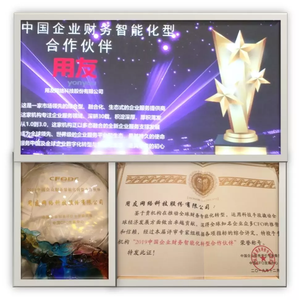 鉴于用友公司在服务企业财务共享中心建设、支持并引领财务数字化、智能化转型咨询与实践过程中所取得的优异成绩,在支持企业财务智能化转型人才培养方面所做出的重要 贡献,并在业界享有的崇高威望,业已成为企业在财务智能化转型发展的最强外脑与重要合作伙伴,中国企业财务评价专家委员会邀请用友公司参与了本次奖项评选。评审专家们从企业创新力、财务竞争力和社会生产力等三大维度,对所有参与企业进行了综合甄选评定,用友公司在激烈的竞争中脱颖而出,获此殊荣!
