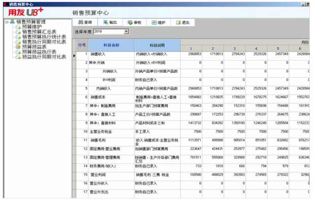 企业预算数据可以快速通过模板进行系统导 入,根据客户、业务员、存货进行预算数据统计, 支持预算执行同期或者上期对比分析;结合企业 预算损益模板及计算公式,进行数据计算及统计。