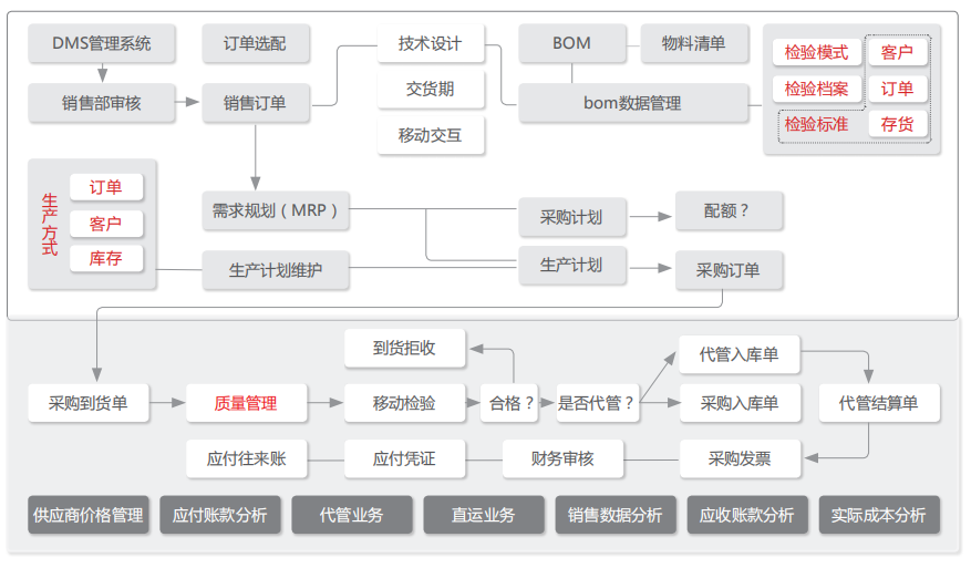 • 经销商通过经销商采购系统(软件开发)自主下发产品及配件的采购订单。