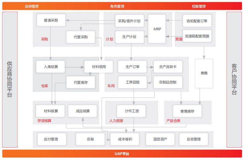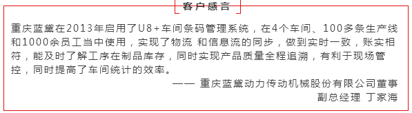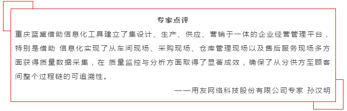 蓝黛通过应用用友U8+财务、供应链、生产制造、供应商协同平台,实现了产供销一体化管理,建立了以生产计划为 核心的物流管控体系、以车间工序流转卡为核心的现场管理体系和质量管控体系、以生产订单为核心的成本核算三大体 系,极大地提升了企业核心竞争力。