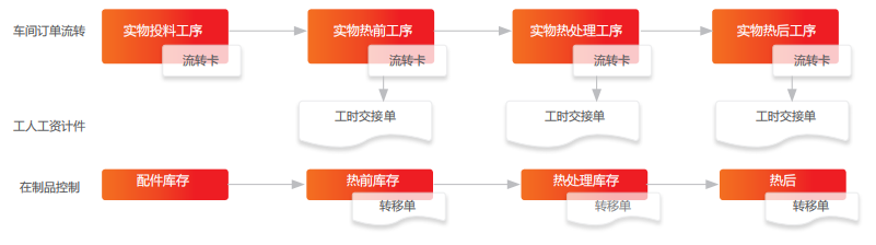 • 建立以车间工序流转卡为核心的现场管理机制和质量管控机制,车间工序流转卡作为车间在制品的身份证,流转卡打 印出来后根据流转卡领料,生产过程根据流转卡报工,记录每一道工序的工人加工情况、质量信息及设备炉号等信 息,完成最后一道工序后经过质检入库,流转卡收回。流转卡全程跟踪车间在制品,随时了解车间在制品的工序情况 及质量状况,同时形成质量跟踪链条。