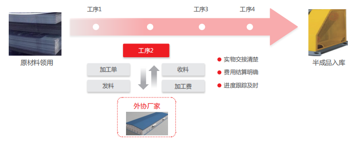 某些工序不具备加工能力或产能不足时,将这些工序交予外协厂家加工,加工完成返回,继续完成后续的加工,定期与外协厂 家结算加工费。应用U8+工序委外严格管理委外工序的全过程,实现了实物交接清楚、费用结算明确、进度跟踪及时。