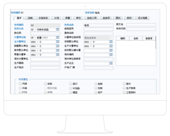产品比较复杂,如砂泵的构成子件电机 就有40多款,因为电机需按厂家、用 途、电压、功率等进行区分,如果都要 一对一编码,就可能有N*N*……个, BOM单也会相当多。最后确定采用 ATO选配的方式,实现了简化编码、快 建BOM、跟踪订单的管理功能。