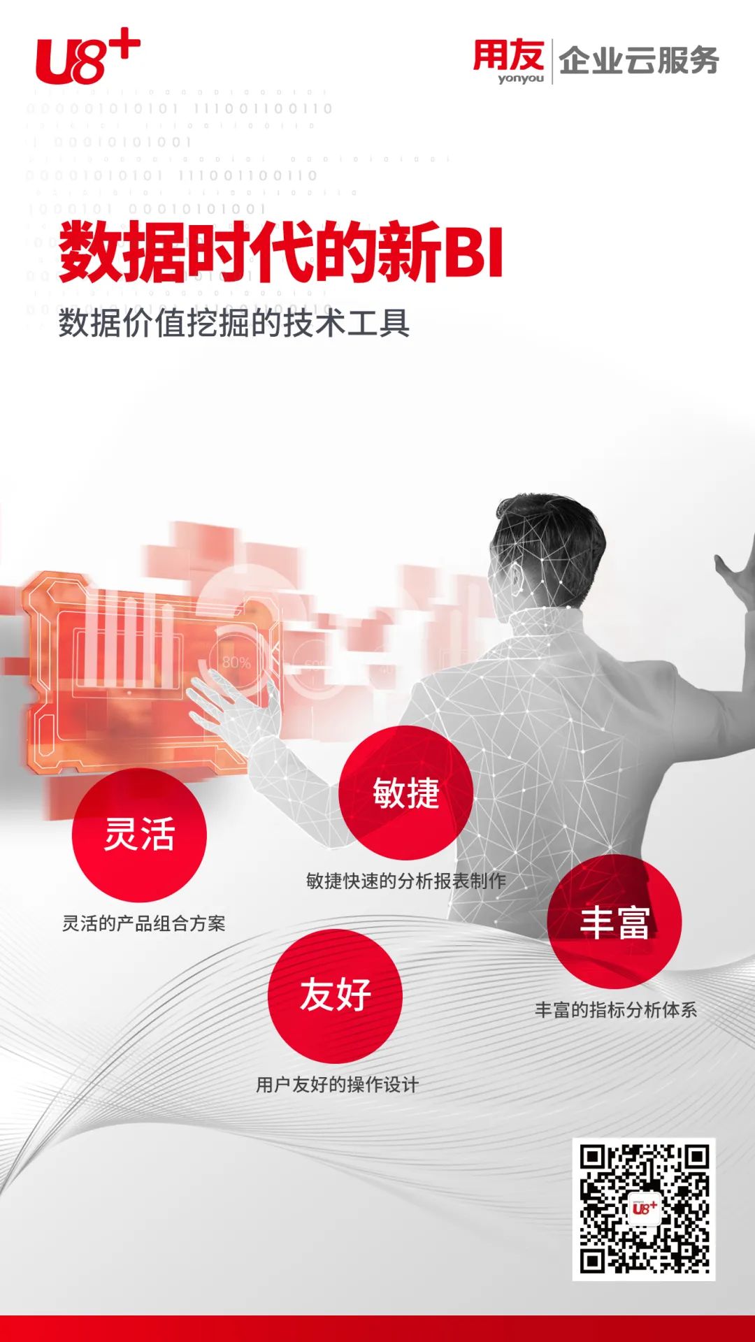 U8+V16.0 新BI是用友公司为了众多企业在大数据时代利用数据进行经营管理所提供的一套完整的由数据仓库、查询报表、数据分析等组成的数据类技术解决方案。方案为企业提供系统性的财税可视化分析指标体系和分析页面,以及供应链可视化分析指标体系和分析页面。系统帮助企业随时洞察企业的财务状况以及有关销售、采购、库存、运营等核心指标;帮助企业通过对关键业务指标的分析,及时发现业务开展过程中存在的问题,推动企业运营和管理能力的提升。