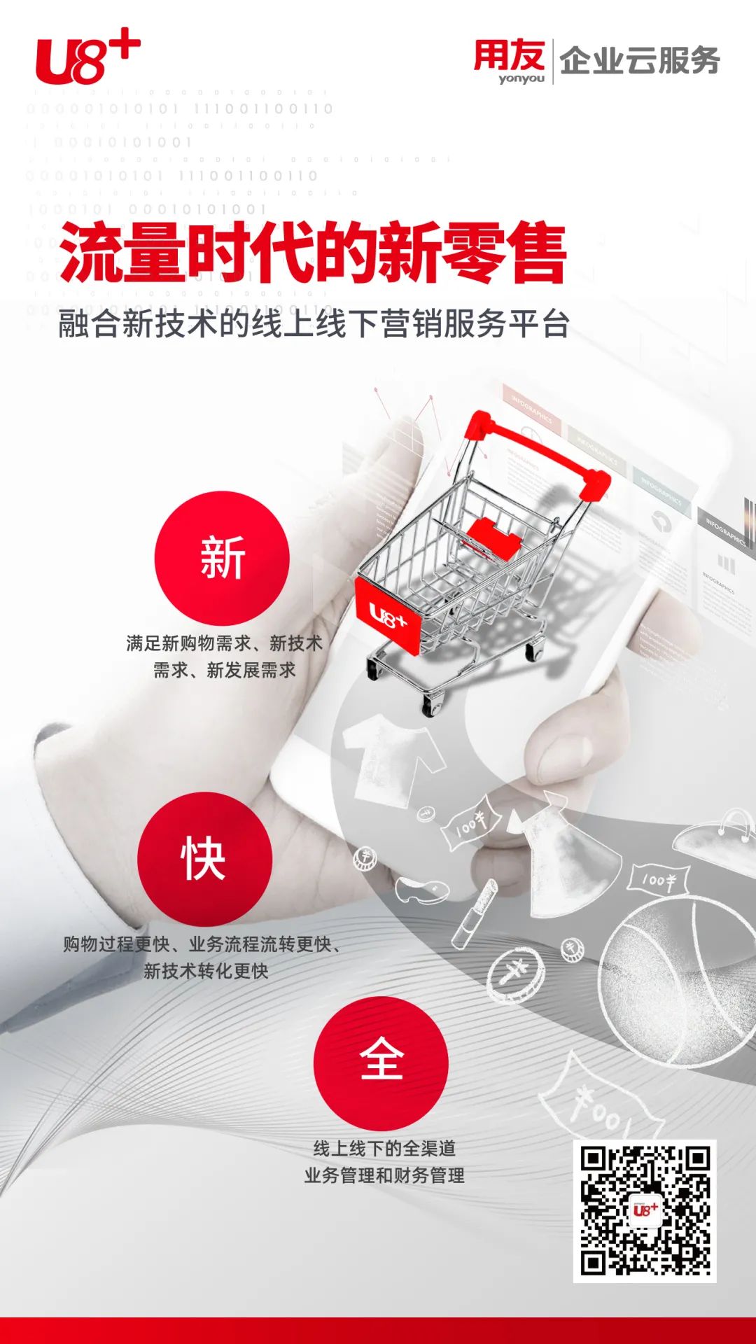 互联网时代,流通零售企业已经从传统的依赖线下门店销售扩充到利用互联网技术的全方位营销,线上零售业务发展迅速,会员营销越发重要;同时,企业也更加关注为消费者提供高效舒适的购物体验。在这种新的要求下, U8+ 新零售解决方案与时俱进,是一套涵盖了流通零售企业的全面营销业务 的解决方案,从财税、供应链延伸到前端的零售终端,包括线上和线下的营 销服务平台,很好地满足了客户的新技术环境下的零售管理需求。