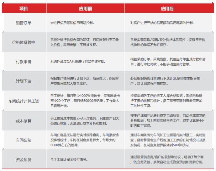 上线U8+生产计划系统后,将生产拉动销售转变为以销售推动生产。计划部门根据销售审核的订单进行MRP运算,安排生 产、采购、委外,计划来源可追溯,计划过程严格控制,让计划更准确更合理。