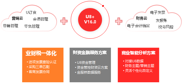 U8+与云端应用融合为客户提供智能制造、智慧财税、数字营销等核心领域完整解决方案,同时深耕行业、专业化赋能企业数智化转型。U8+不再仅仅是服务于企业内部管理的传统ERP系统,而是为企业与企业间通过互联网提供各种服务和应用的新平台。