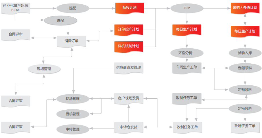 客户构建了以销售订单 / 预测订单为龙头,计划为核心的企业内部管理信息化平台,实现了订单 - 设计 - 计划的信息化流程,为后续 企业持续精益经营奠定优良基础。