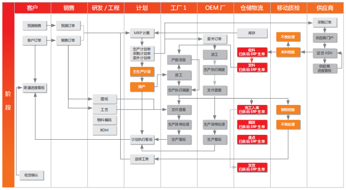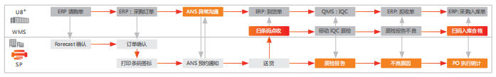 • 通过集成供应商门户实现采购订单、ASN、包装条码、与来料检验,订单执行对账与供应商协同,提高订单执行效率,提升供应商品质 管理,实现条码统一利用,节约成本。