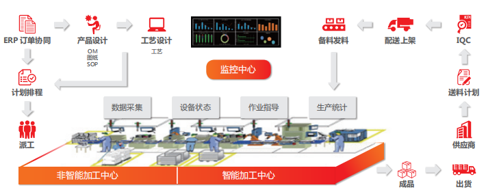 • 以 ERP 为中心实现供应链管理、生产管理、外发管理、财务核算、预算、主数据管理应用。