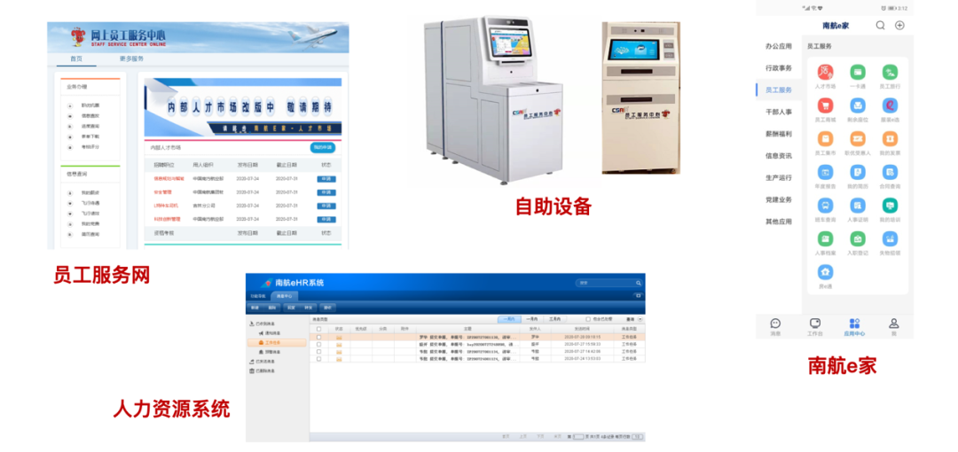二是进行共享服务平台的搭建。南航首先从整体上进行了数字化转型规划,承接企业价值链对平台的能力要求及人力共享模式的业务诉求。其次,从业务规划报告中的共享服务模式出发,以“规范、集成、智能”为共享服务理念,提出从体验、自助服务、访问渠道和人力资源系统四个方面的建设和优化升级建议。搭建“1+e”共享服务体系,即“1”是指一个员工服务中心,“e”是指在南航e家移动门户上的共享服务平台。并且在最终实现上线的人力共享服务平台功能,包括了门户、客服热线、个案系统、知识库系统、文档管理等系统功能。