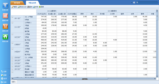 ·人力资本分析模块,通过考勤分析及人员流动情况分析,实时掌握企业人员动态