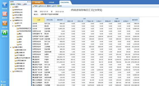 ·进销存分析,主要分析产品分类下所有存货的期初、期末数量及出入库明细数
