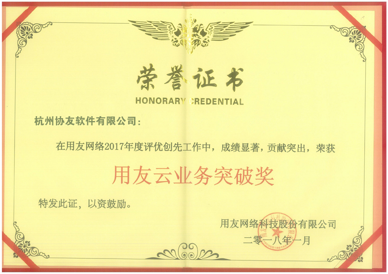 2017用友云业务突破奖