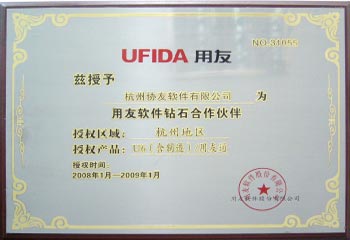 授予“杭州协友软件有限公司”为用友软件钻石合作伙伴