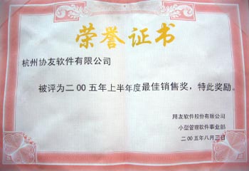 软件有限公司”被评为2005年上半年度销售奖