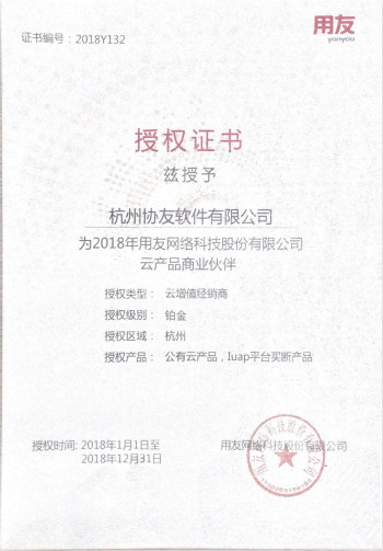 2018年度用友产品商业伙伴云产品