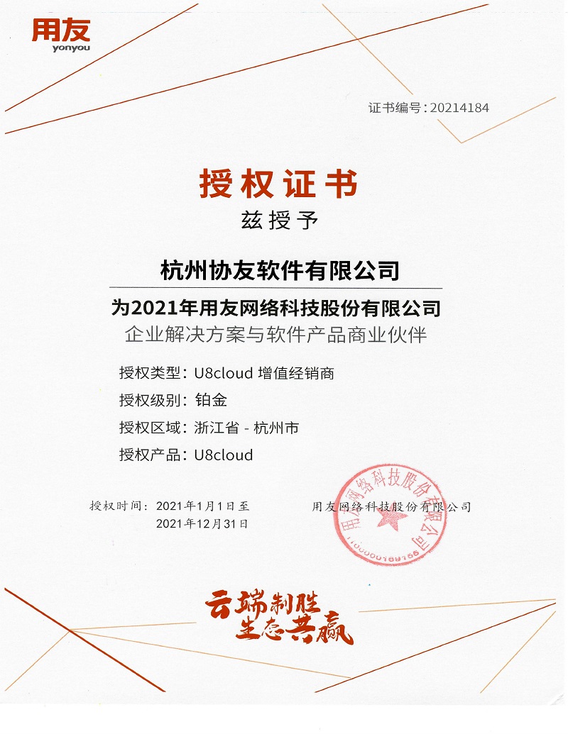 2021年U8Cloud铂金合作伙伴