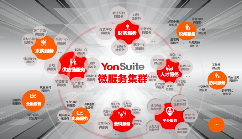 YonSuite由数百个微服务构成,形成了规模化的微服务集群,将原本大而复杂的单体架构,重组为小而精美的独立服务,具有高扩展性和高弹性。