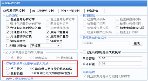 单据表体税率:根据选项“订单到货单发票单价录入方式”设置不同,而带出顺序不同;