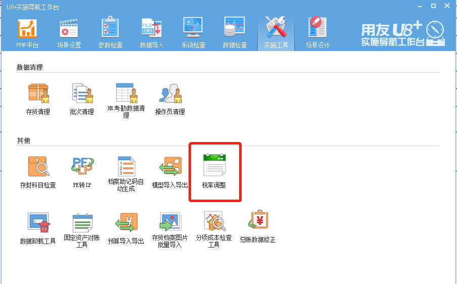 · 工具支持调整范围:存货档案选项进、销项税率默认值,采购选项及委外选项的单据默认税率,存货档案、客户档案和供应商档案已有数据税率。