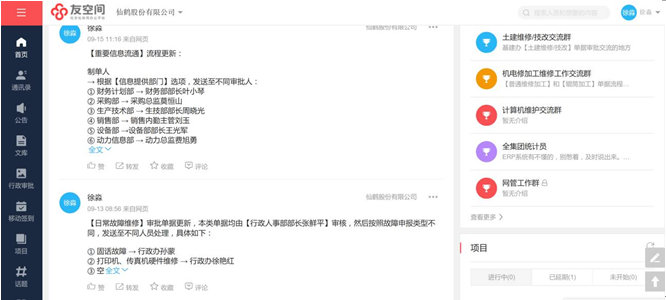 友空间为仙鹤股份提供流程审批、移动考勤签到、文库知识共享等功能,帮助企业解决上下游协作难题,员工轻松应对日常办公。